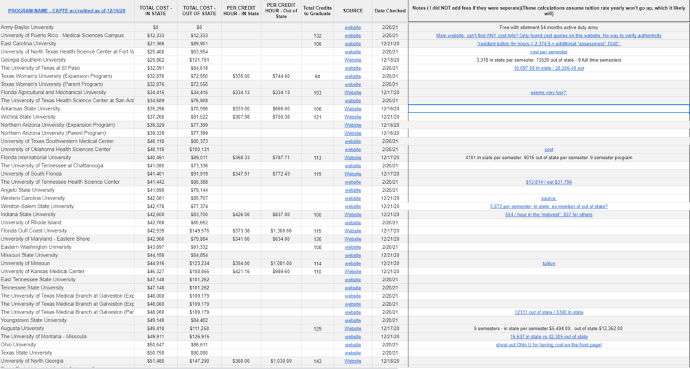 A few months back, I was looking for a list of total tuition costs for PT school, but couldn't find one anywhere.